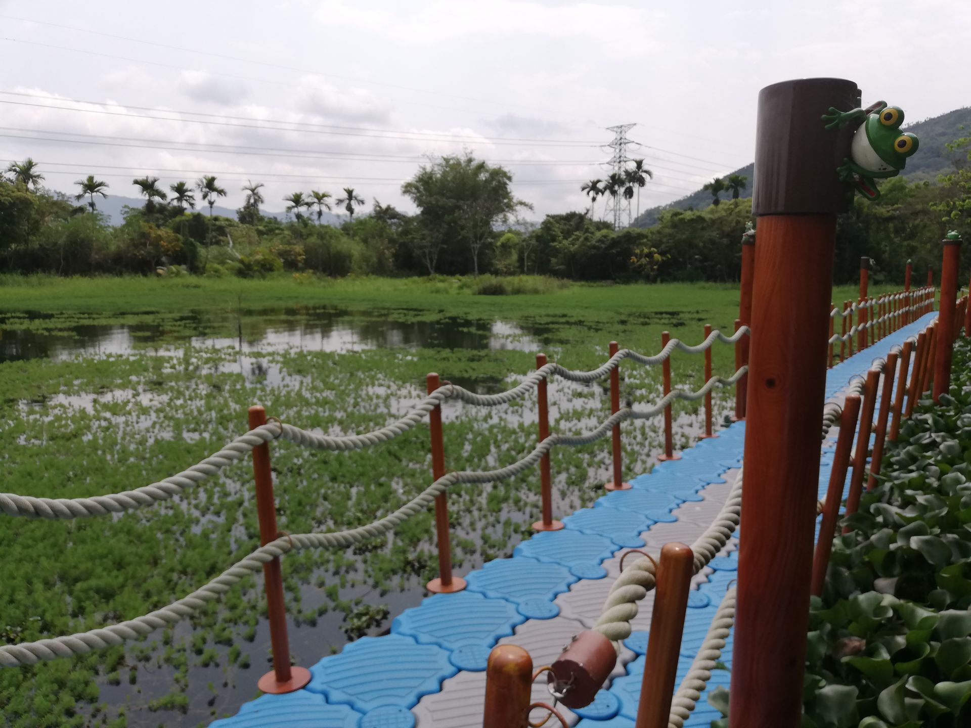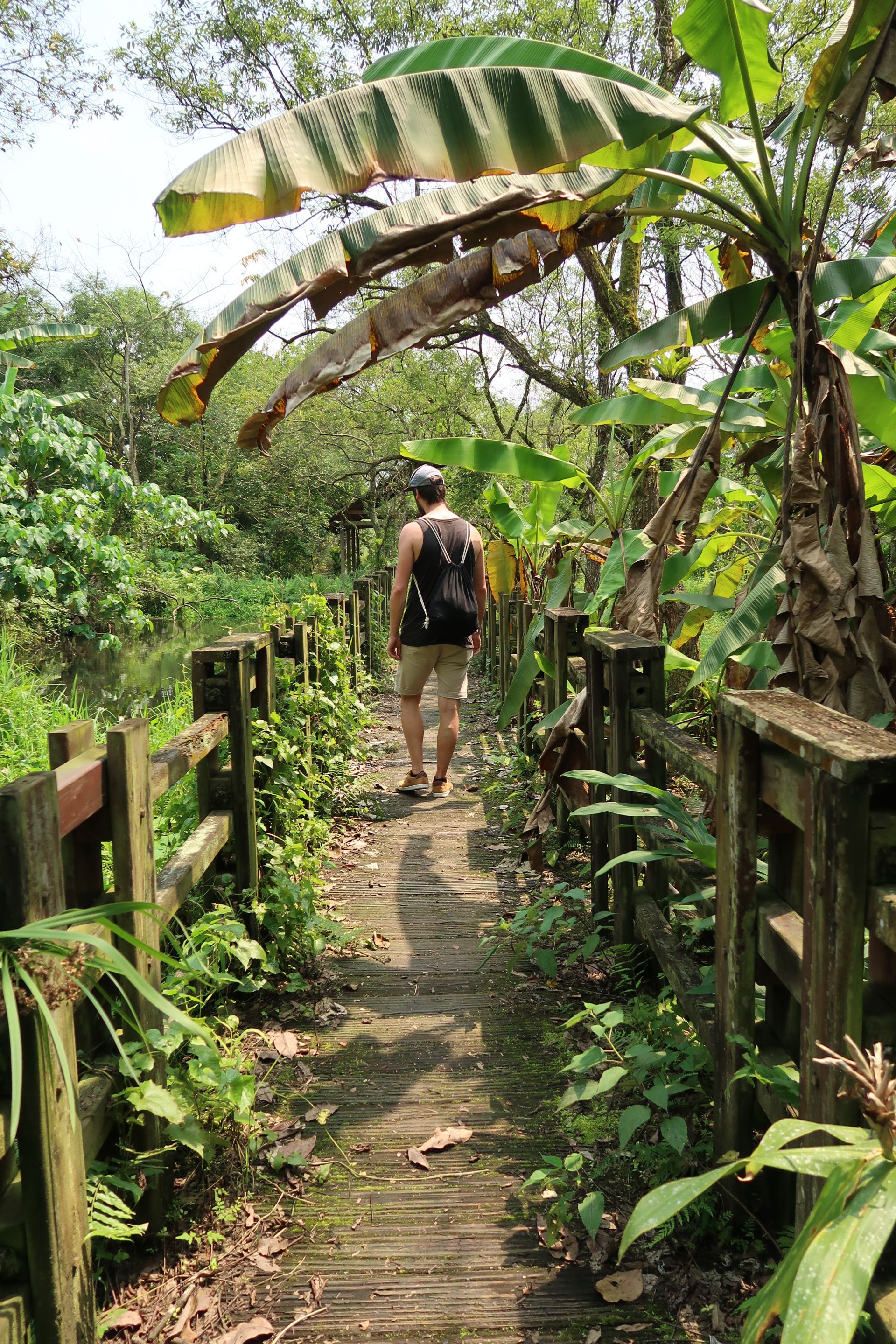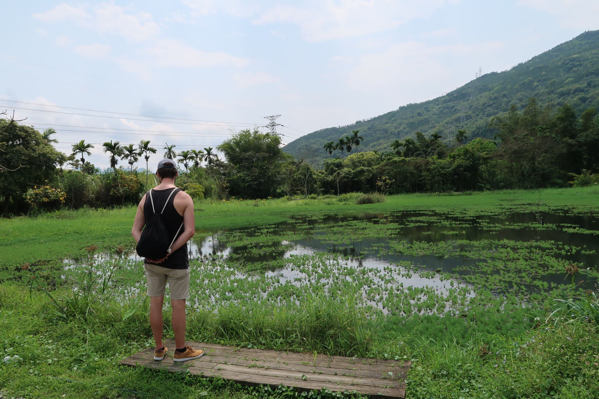 Zum Glück hatten wir Mückenspray dabei. Denn es handelte sich bei dieser Farm eigentlich eher um ein riesiges „Biotop“ bzw. eine Frösche-Farm. Wir schauten uns um. Wir hörten die Frösche zwar, aber sehen konnten wir sie nicht. Irgendwie wollten sie sich uns nicht zeigen. Dafür sahen wir viele Libellen, andere bekannte und unbekannte „Flugobjekte“ und kleine Fische. Die Wege waren sehr schön hergerichtet, mit Holzbrücken und kleinen Pavillons. Ein Ausflug ins Blaue, der in einem Ausflug ins Grüne endete.