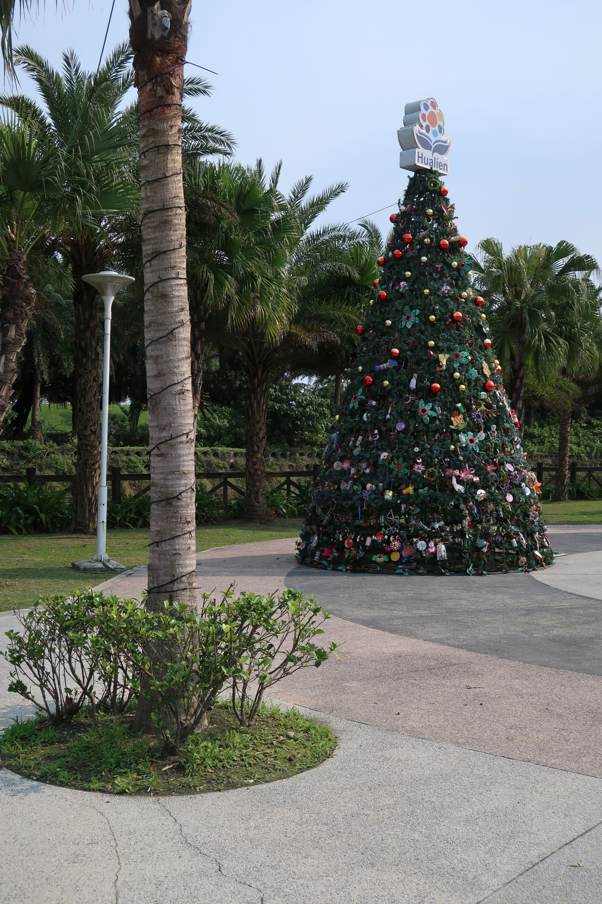 Zurück in Hualien machten wir einen Abstecher zur Strandpromenade. Warum sie dort immer noch Weihnachtsschmuck verwenden, ist uns ein Rätsel. 😅