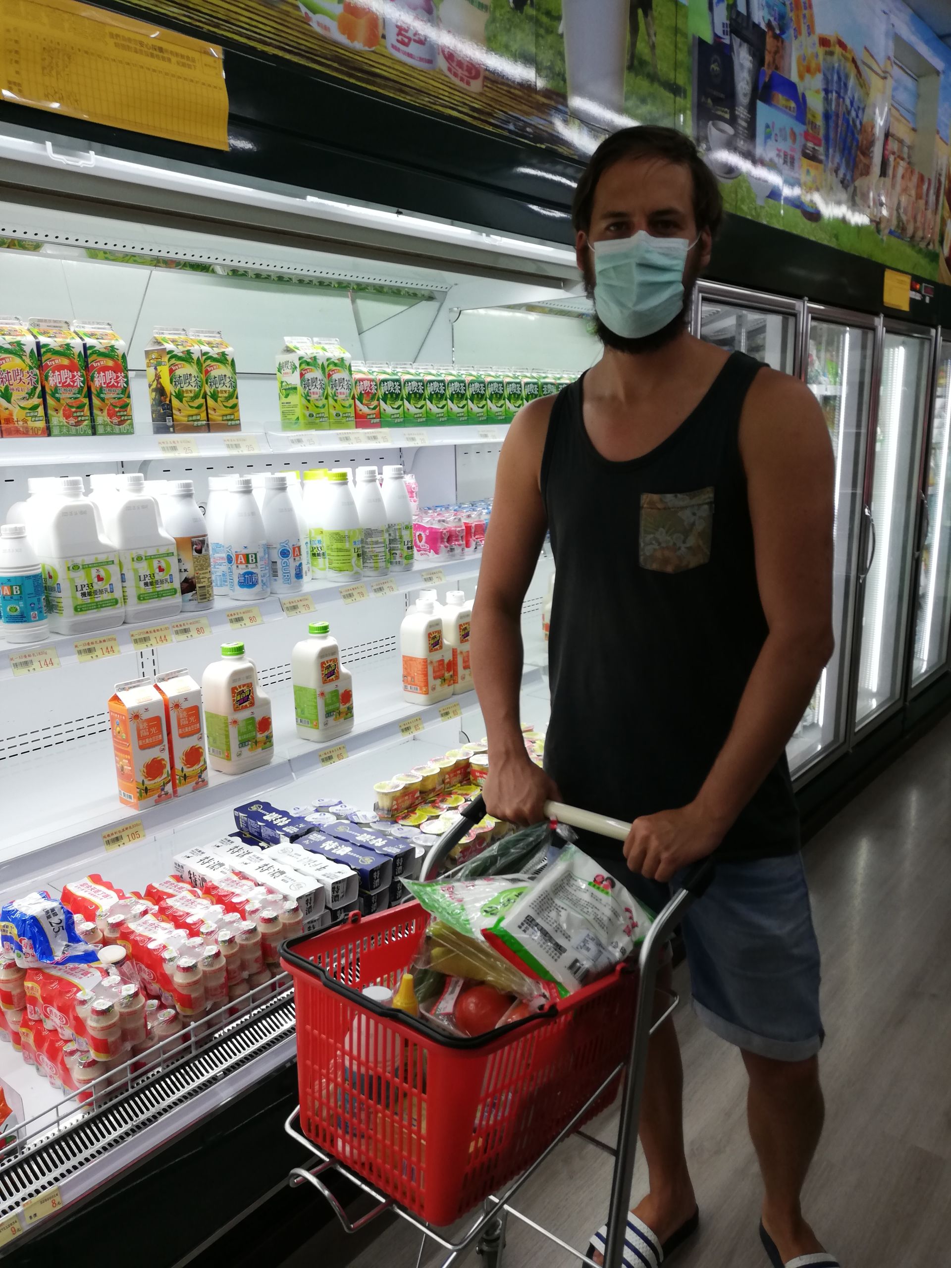 Hier befindet sich auch der nächst grössere Supermarkt. Denn in Donghe selber gibt es nur den eher „teureren“ 7-Eleven, einen kleinen Gemüsehändler und einen einfach bestückten Einkaufsladen, der aber keine Frischprodukte verkauft. Darum genossen wir es sichtlich, wieder einmal in einem Laden mit etwas mehr Auswahl einzukaufen.