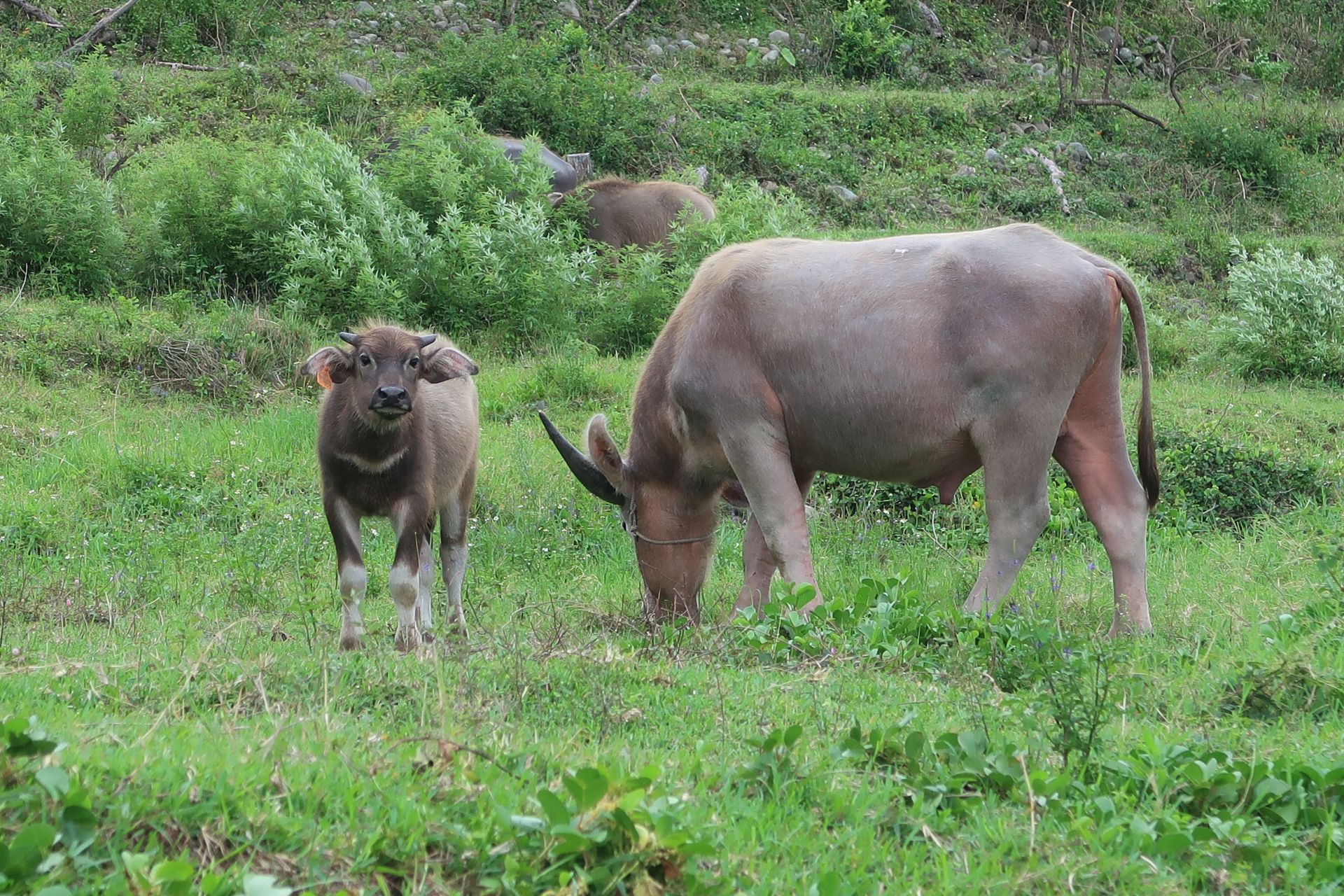Wir machten uns auf, das Bachbett und die Gegend rund um diesen „Rivermouth“ genauer anzuschauen. Dabei folgten wir einem kleinen Weg, der dem Bachufer folgte. Mit Flipflops war das doch eine ziemliche „Rutschpartie“, denn der Weg war voller Matsch. Auf unsere Schritte fokussiert bemerkten wir so zuerst gar nicht, dass neben uns ein paar Kühe im Gras weideten. Plötzlich schnaubte etwas ziemlich laut und wir sahen, dass dies nicht nur Kühe waren. Auch ein Stier war darunter. Er und die Mutterkuh beobachteten uns misstrauisch.