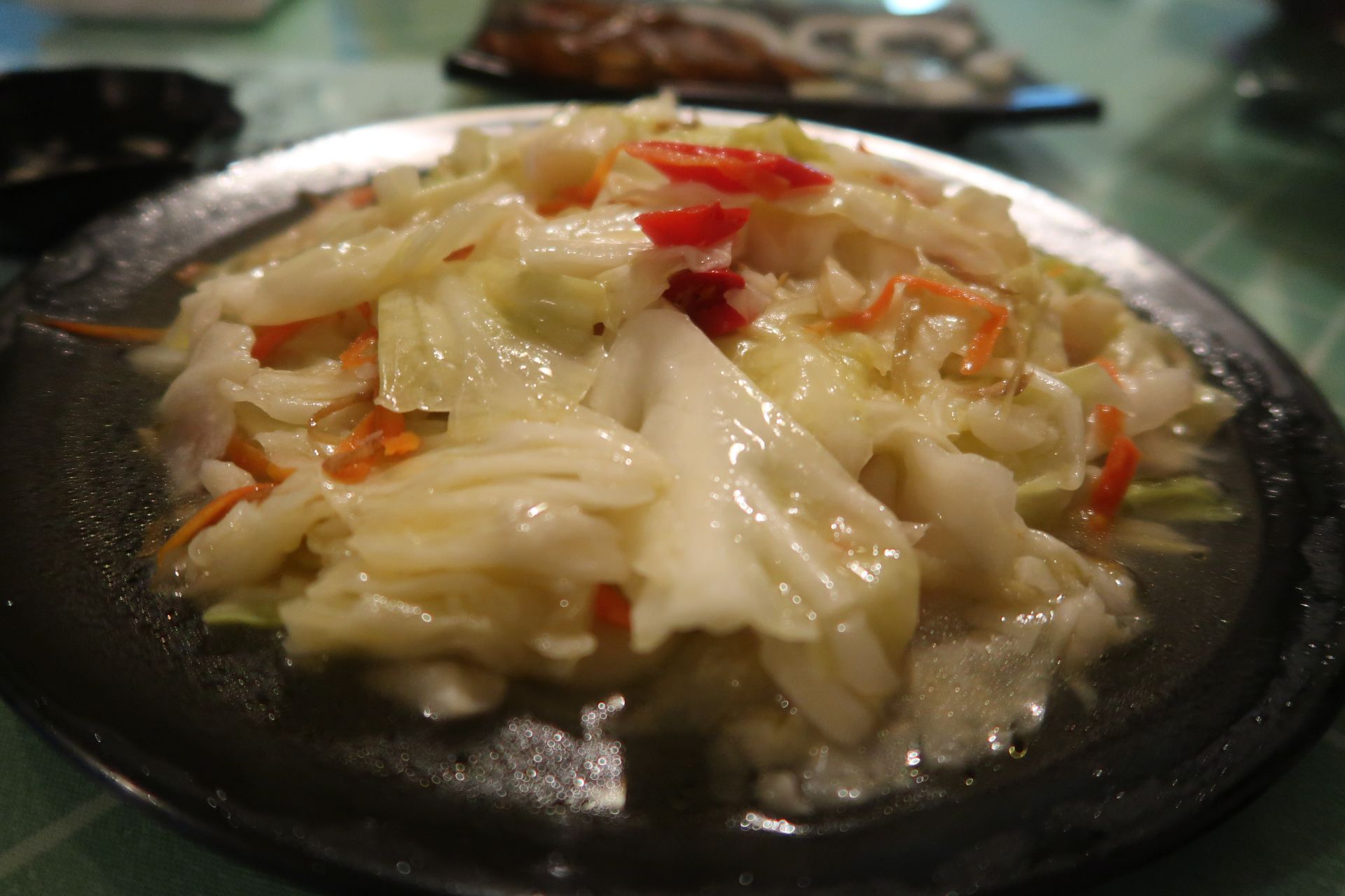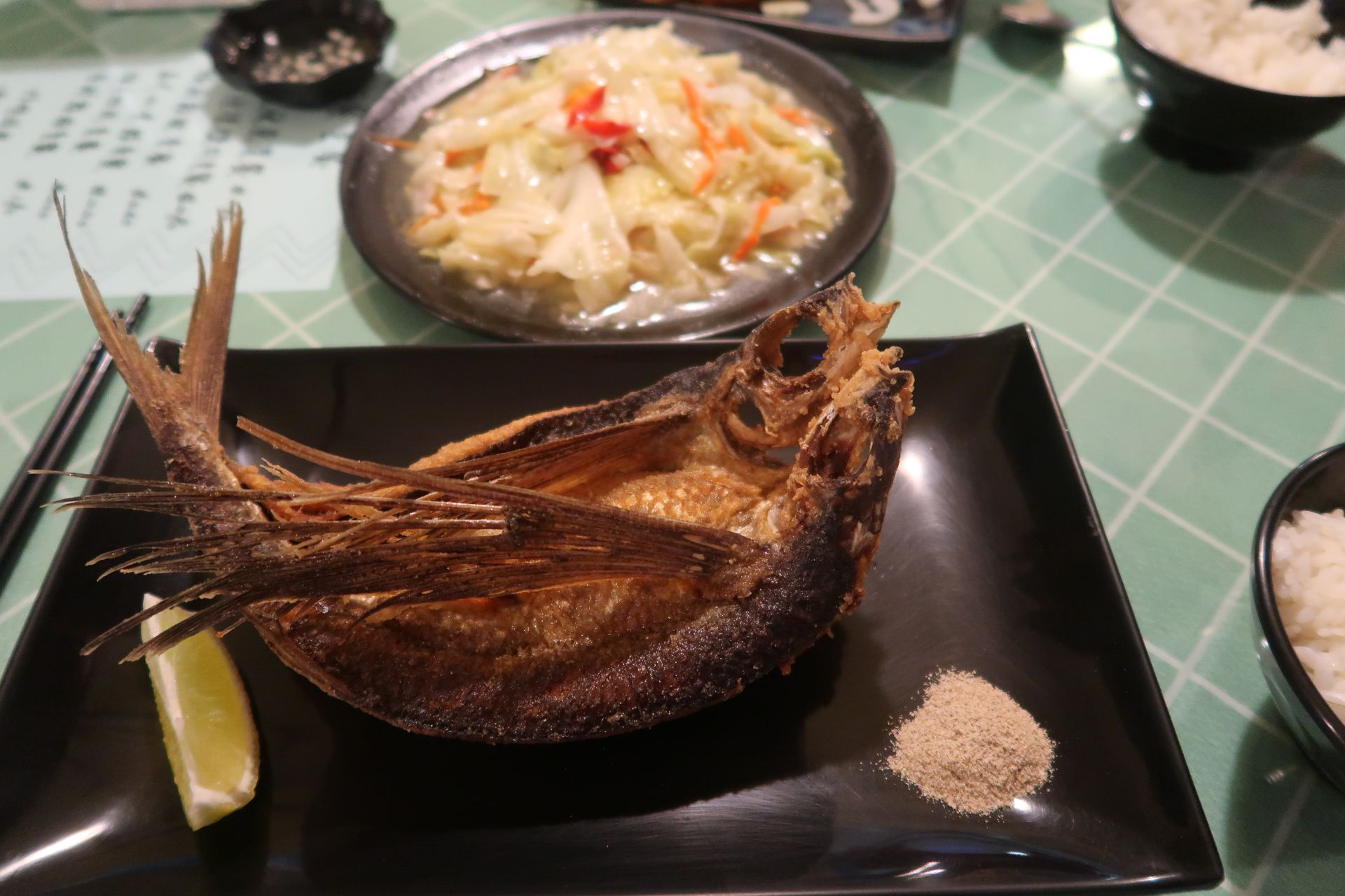 Zum Znacht gönnten wir uns einen lokalen Festschmaus: Fritierter Fliegenfisch (Lanyu’s Spezialität), Schwein nach traditioneller Art und dazu Gemüse und Reis. So lecker.