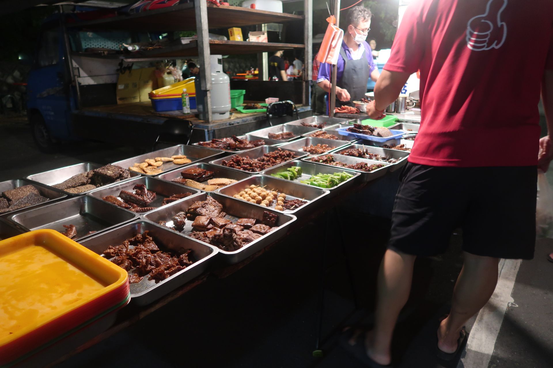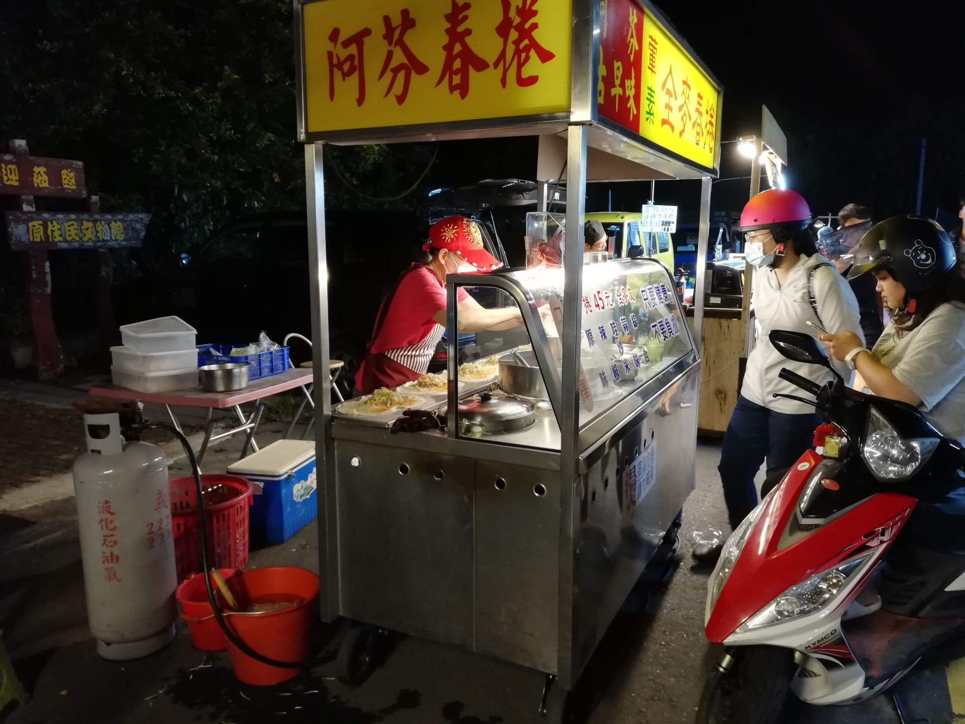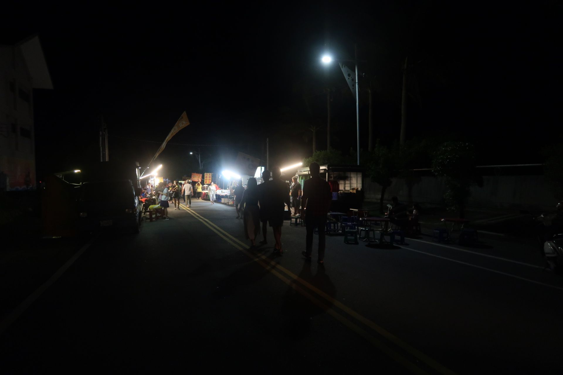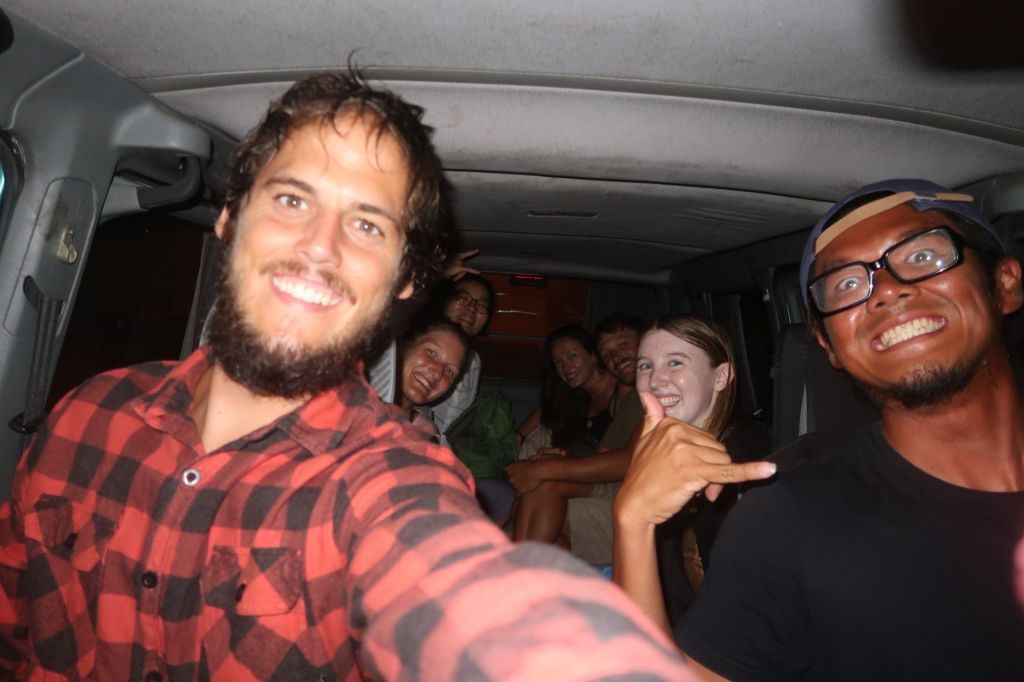 Auch an der Ostküste gibt es Night Markets. So findet beispielsweise immer montags der Night Market in Chenggong statt. Ula, der Besitzer des Surf Houses, holte uns in seinem Van ab und so fuhren wir gemeinsam zu siebt los. Ula, Dara, Fiona, Alex, June und wir zwei. Nicht das der Van ein 7-Plätzer gewesen wäre. Ula hatte ein paar Gartenstühle in den leeren, hinteren Bereich gestellt. 😂