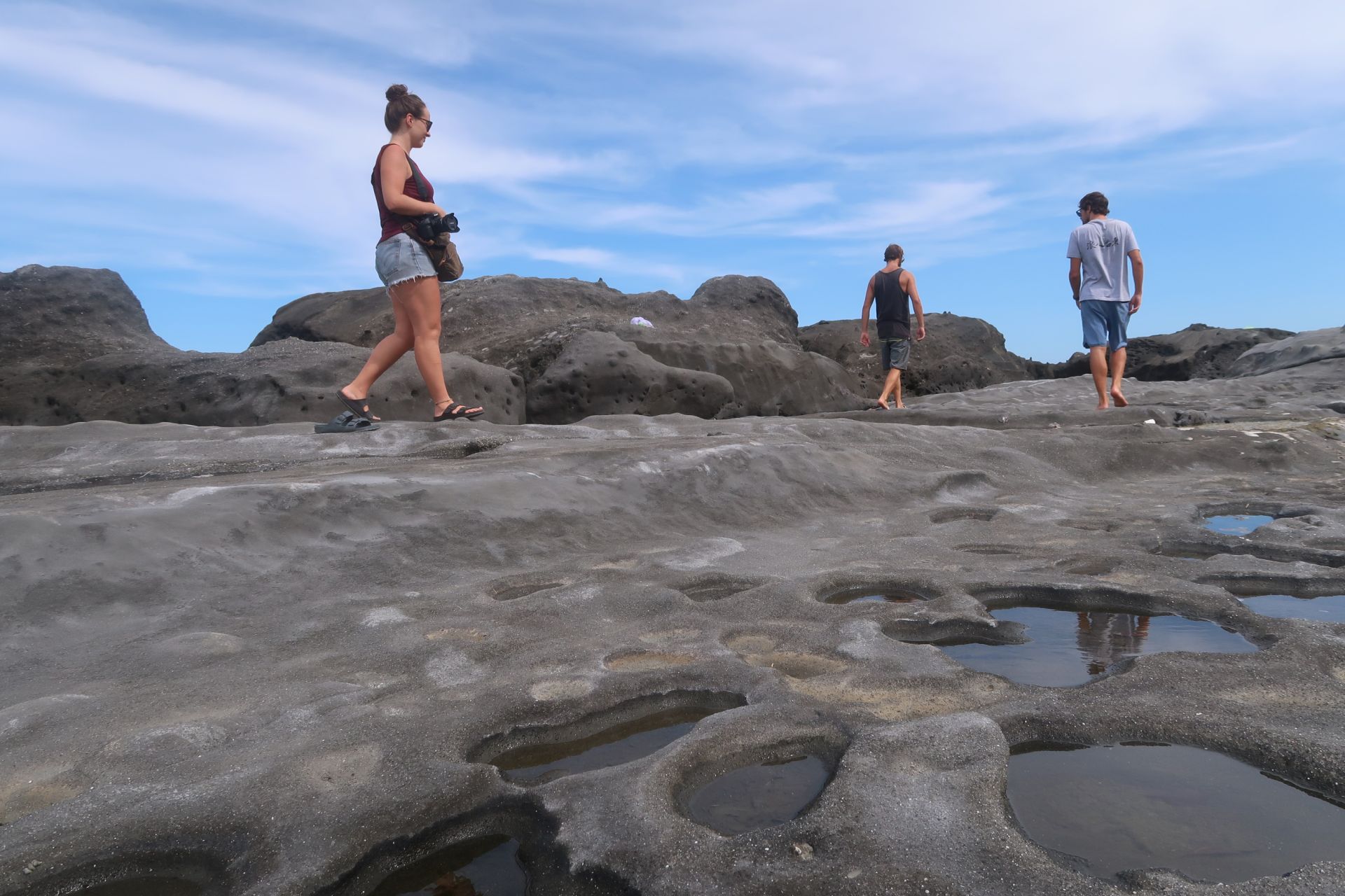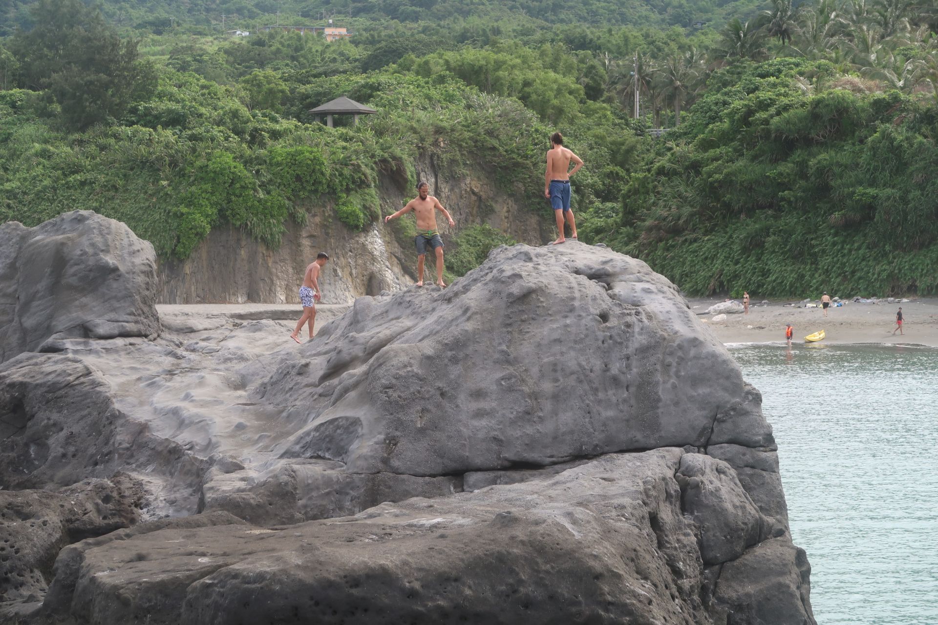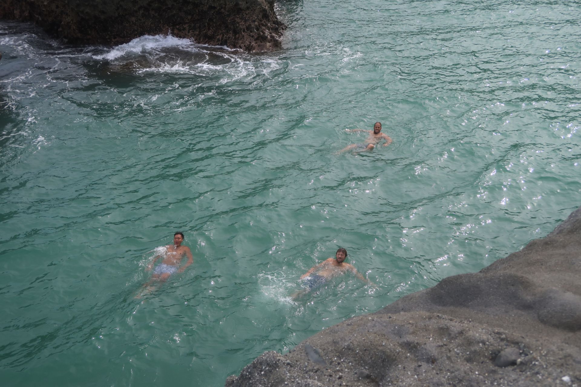 Noch etwas geflashed von den vielen Penisen, gings mit dem Roller Richtung Strand. Anscheinend gab es ganz in der Nähe einen Felsen, von wo aus man prima ins Meer „gumpen“ kann. Der Felsen ist vielleicht 8 Meter hoch. Die Jungs waren natürlich Feuer und Flamme − Dara und Kelvin wahrscheinlich etwas mehr als Remo. Denn Remo mag die Höhe nicht besonders. Doch nach kurzem Zögern, sprang auch er ins Wasser.