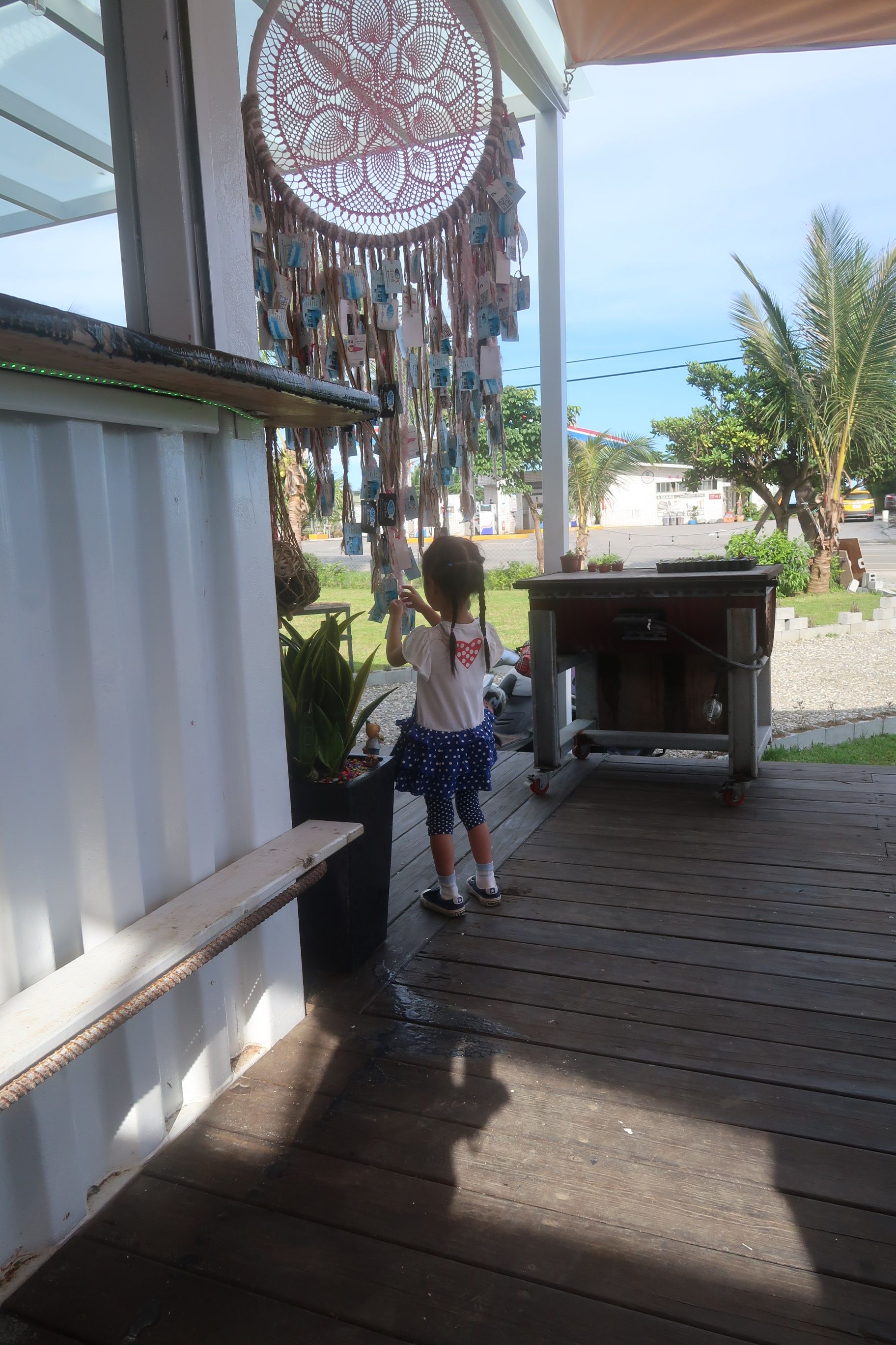 Fiona und ich beliessen es beim Zuschauen und gönnten uns nachher vom Sandstrand aus einen Schwumm im Meer. Nach dieser schönen Abkühlung gings zurück Richtung Donghe. Unterwegs sahen wir eine coole Bar, wo wir uns ein kühles Bier gönnten. Dieser Ort war perfekt für eine Bar bzw. Disco. Mitten im Grünen. Mit einer coolen Dachterrasse.