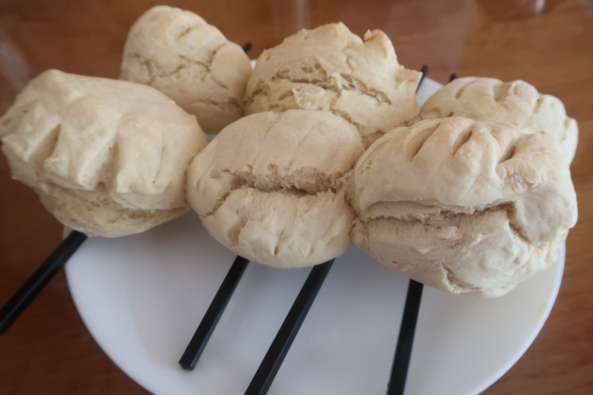 Wenn Bananenbrot funktioniert, können wir ja auch einmal Brötchen backen. Gesagt, getan. Auch wenn die Brötchen nicht Weltklasse waren − eine schöne Abwechslung zum Toast war es ohnehin.