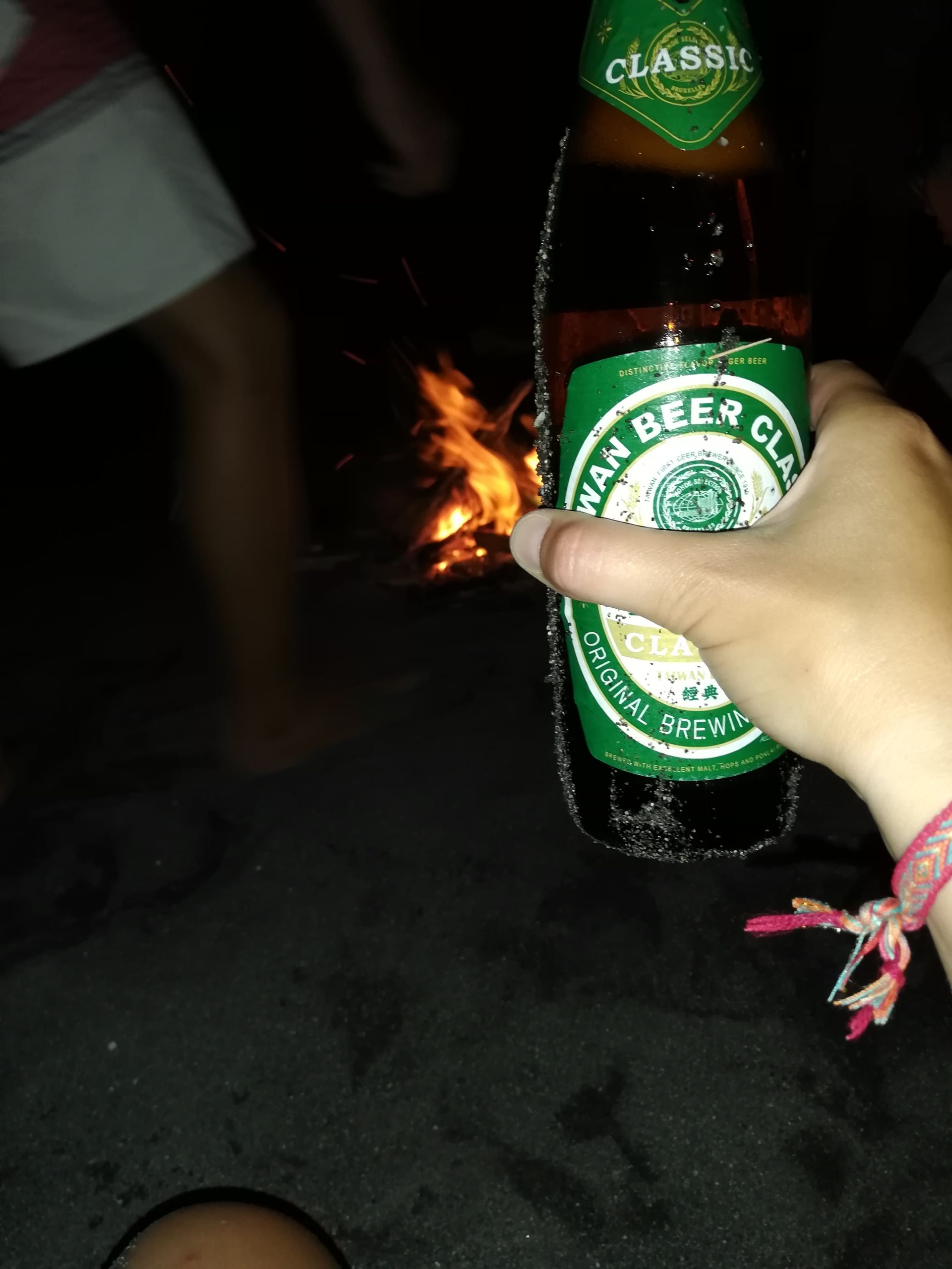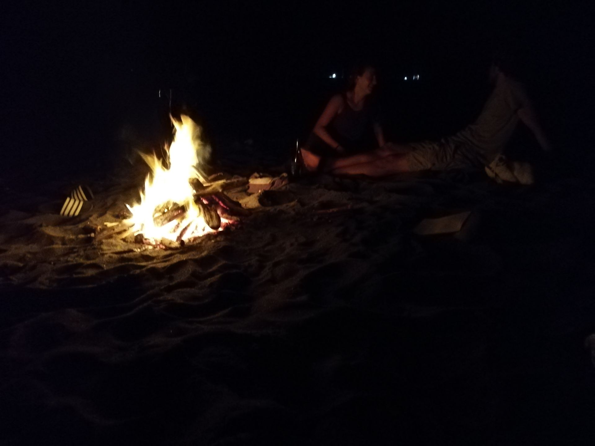Dara war es, der diese Idee hatte. Und wir − bereits etwas angeschwipst vom Reiswein − waren natürlich sofort dabei. Also ging es ab an der Strand. Schwemmholz sammeln. Feuer machen. Musik hören. Geniessen.