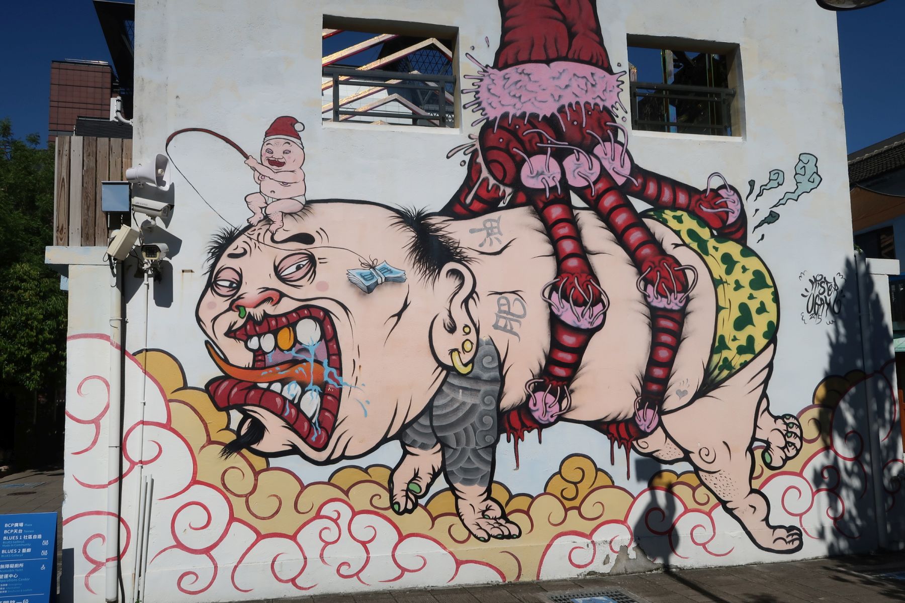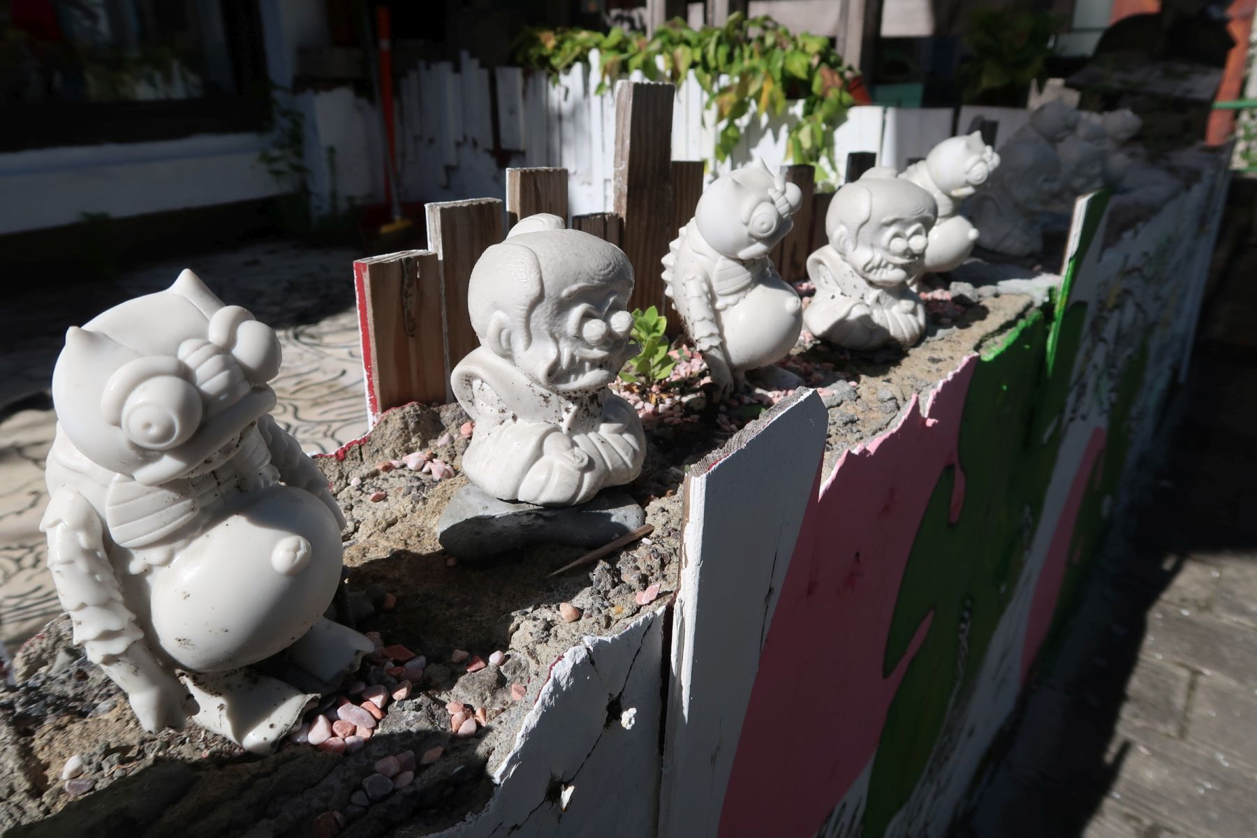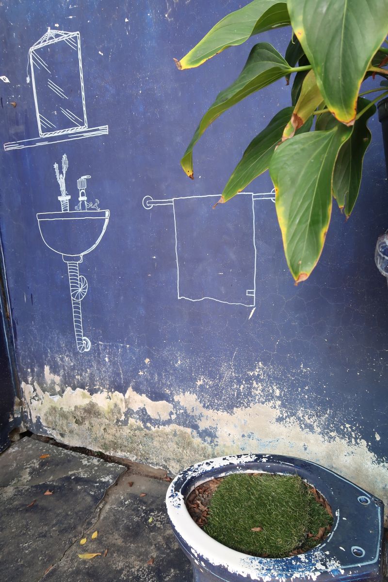 Die Wände der Bauten diente als Leinwand für schöne Bilder und lustige Karikaturen. Auch das „blaue“ Häuschen mit den 2D-Zimmern gefiel uns.
