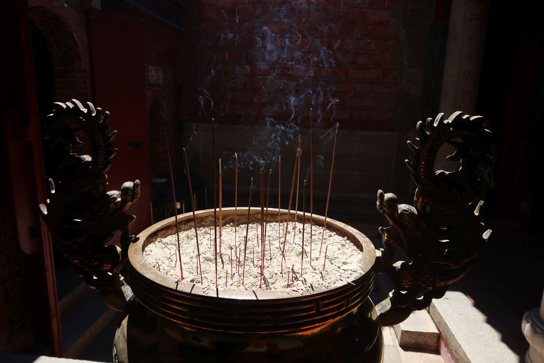 Im oberen Stockwerk der Fort befand sich ein Gabentempel für Lord Kui Xing, der chinesische Gott der Prüfung. Auf seinem Altar war eine Box mit Bleistiften aufgestellt. Man durfte einen auswählen, wenn es die Götter befürworteten. Dazu wirft man die roten Halbmondhölzchen, Jiaobei genannt, in die Höhe und wartet ab, wie sie fallen.
