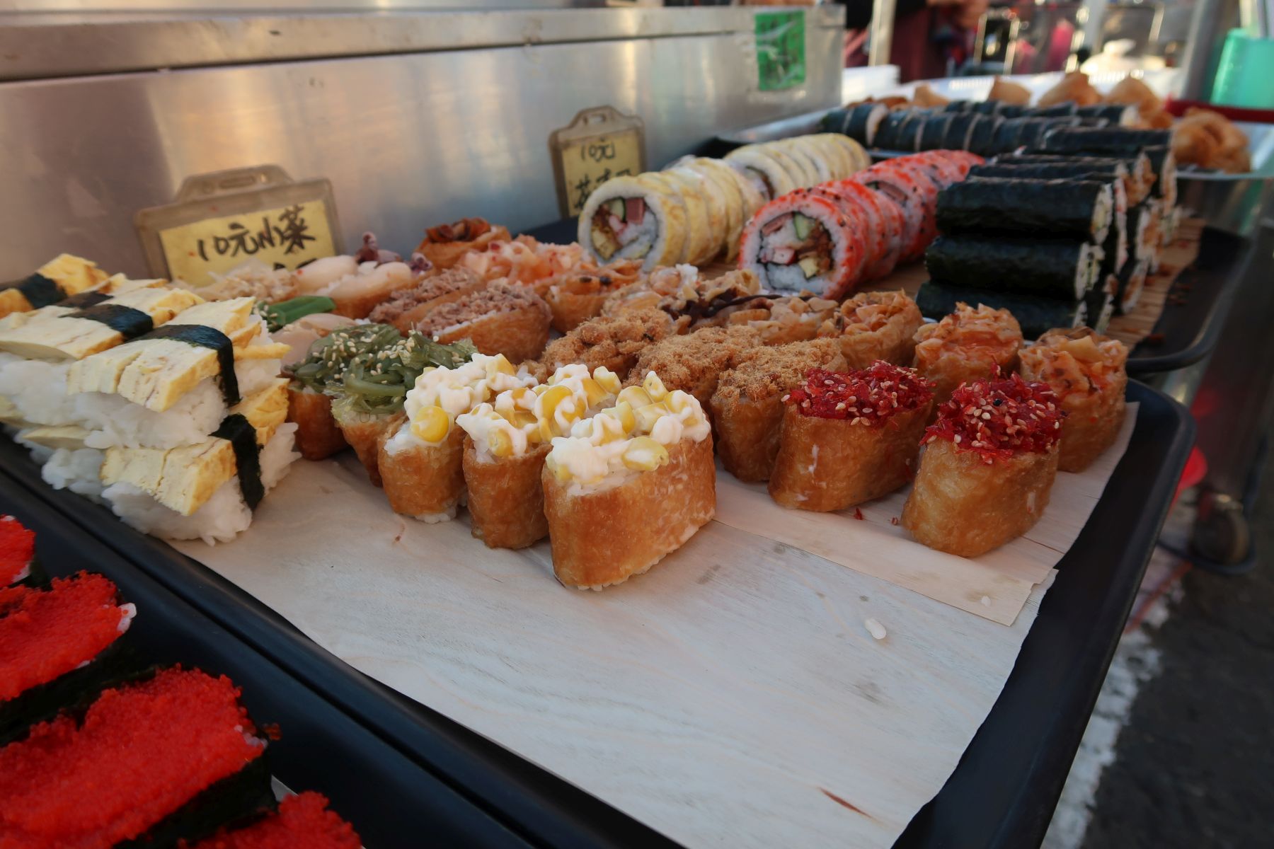 Dann ging es an den berühmtesten und ältesten Night Market von Taiwan, dem Garden Night Market. Wir waren früh dran. Einige Stände wurden erst aufgebaut. Nebst Essenständen hatte es hier auch viele Waren- und Spielstände. Wir gönnten uns leckere Sushi und einen mit Liebe zubereiteten Burger. Auch ein Moji-Dessert durfte bei mir nicht fehlen.