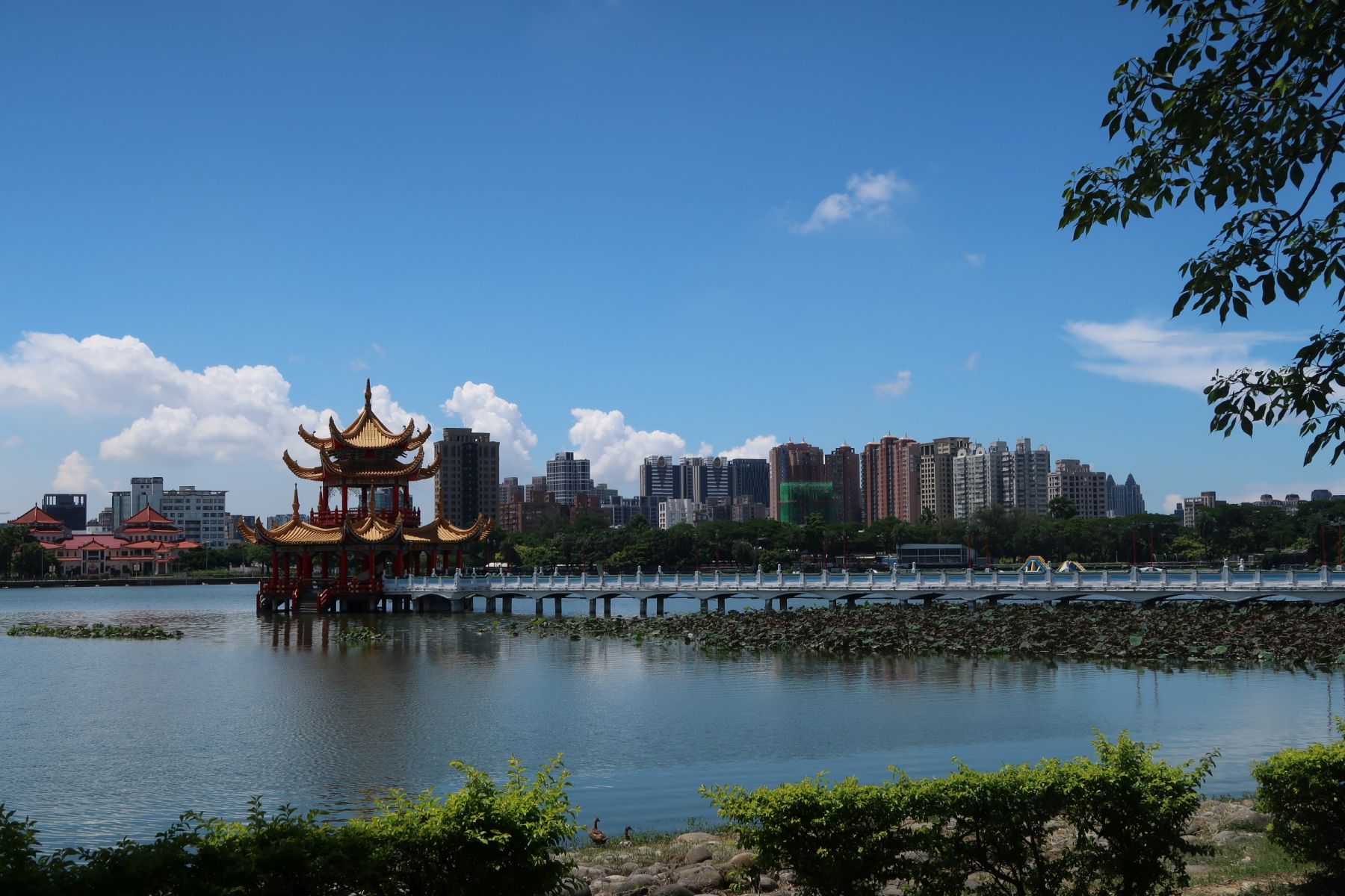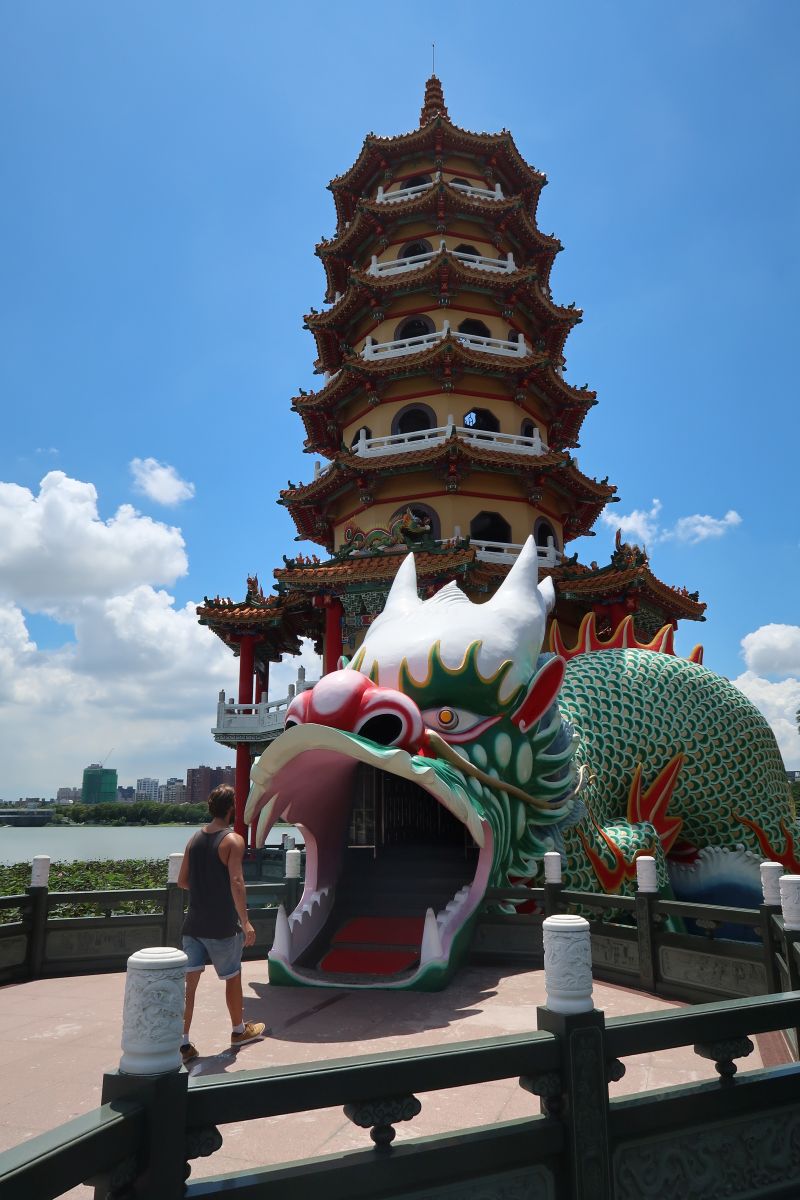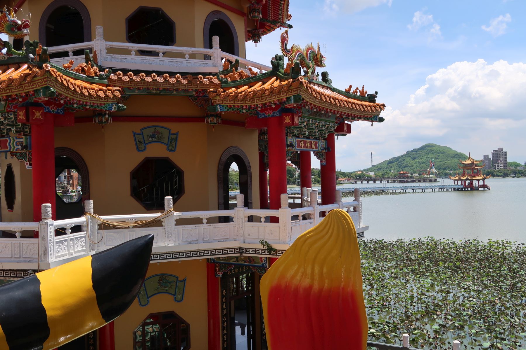 Anstatt uns direkt in die Metro nach Kaoshiung zu setzen, verstauten wir unsere grossen Rucksäcke in zwei Schliessfächern und machten uns auf den Weg zum nahegelegenen Lotus Lake. Da unsere Wädli immer noch brannten, gönnten wir uns eine Taxi-Fahrt zum See.