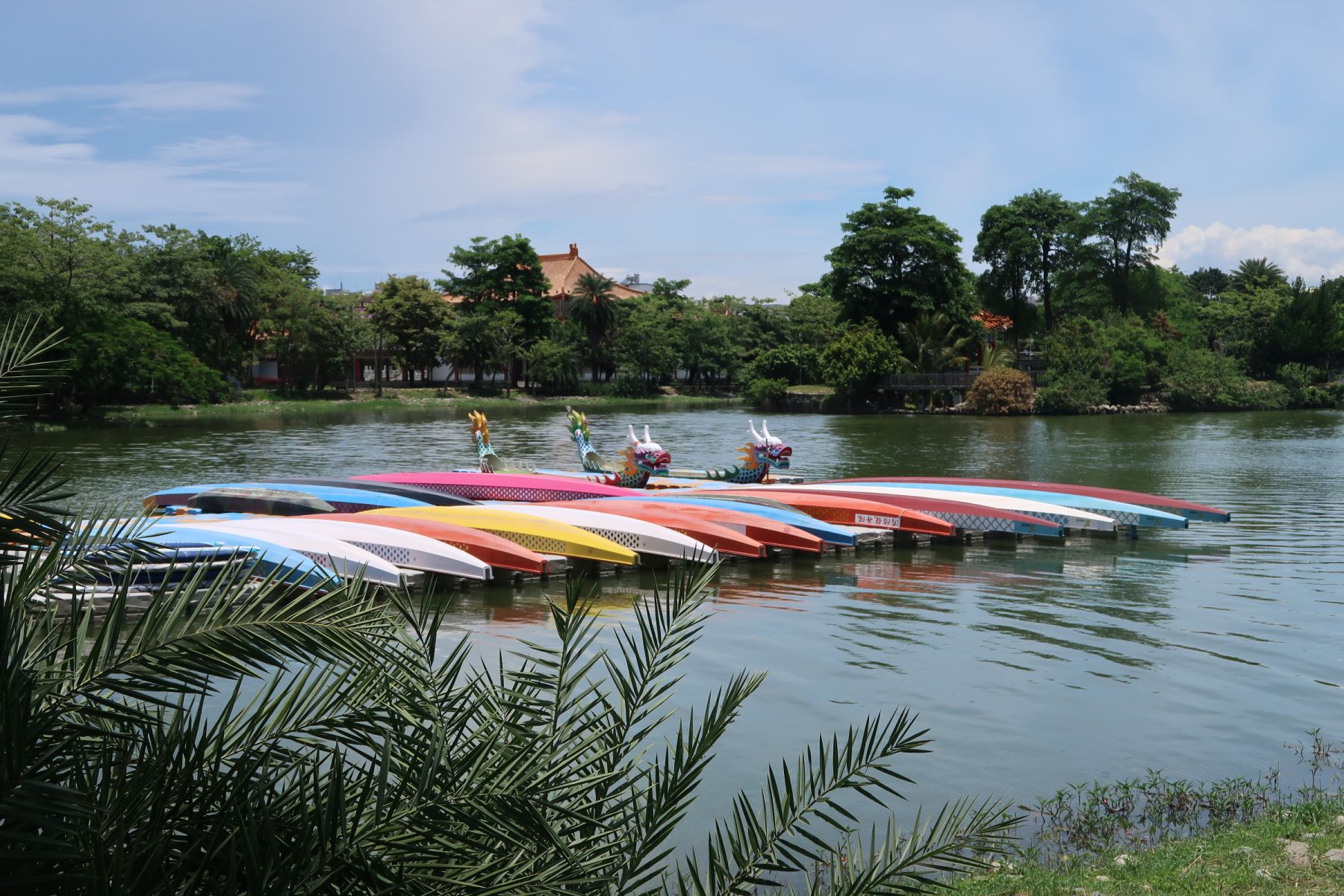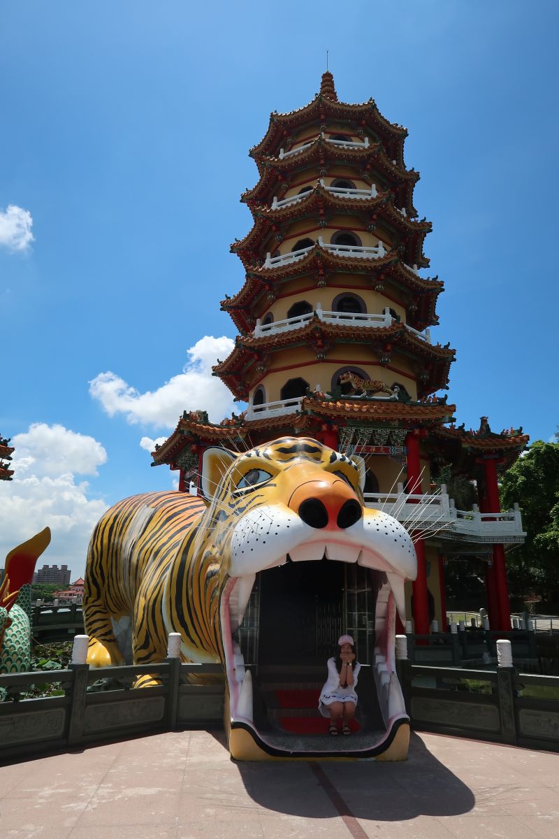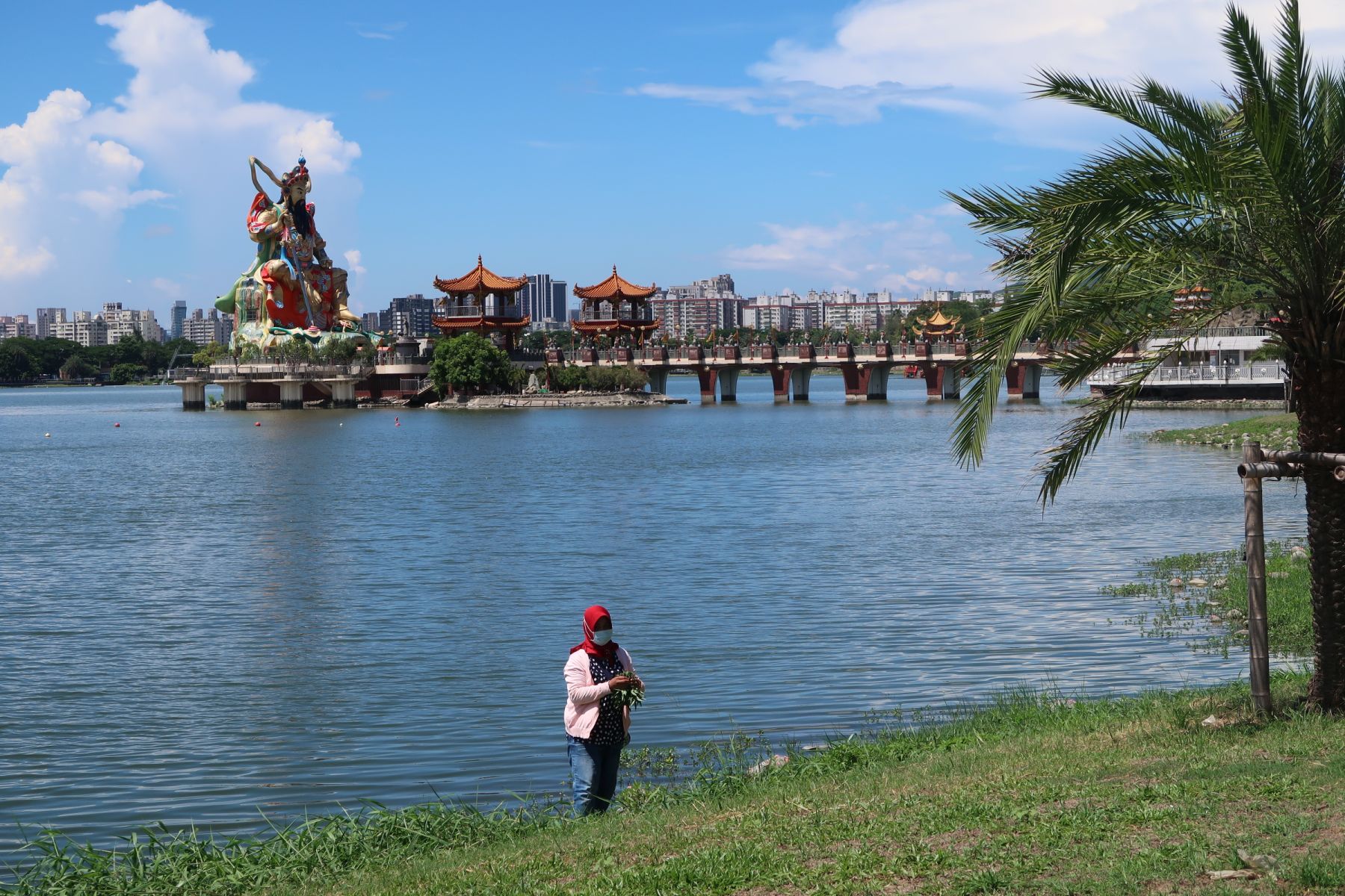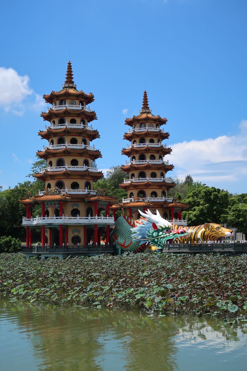 Anstatt uns direkt in die Metro nach Kaoshiung zu setzen, verstauten wir unsere grossen Rucksäcke in zwei Schliessfächern und machten uns auf den Weg zum nahegelegenen Lotus Lake. Da unsere Wädli immer noch brannten, gönnten wir uns eine Taxi-Fahrt zum See.