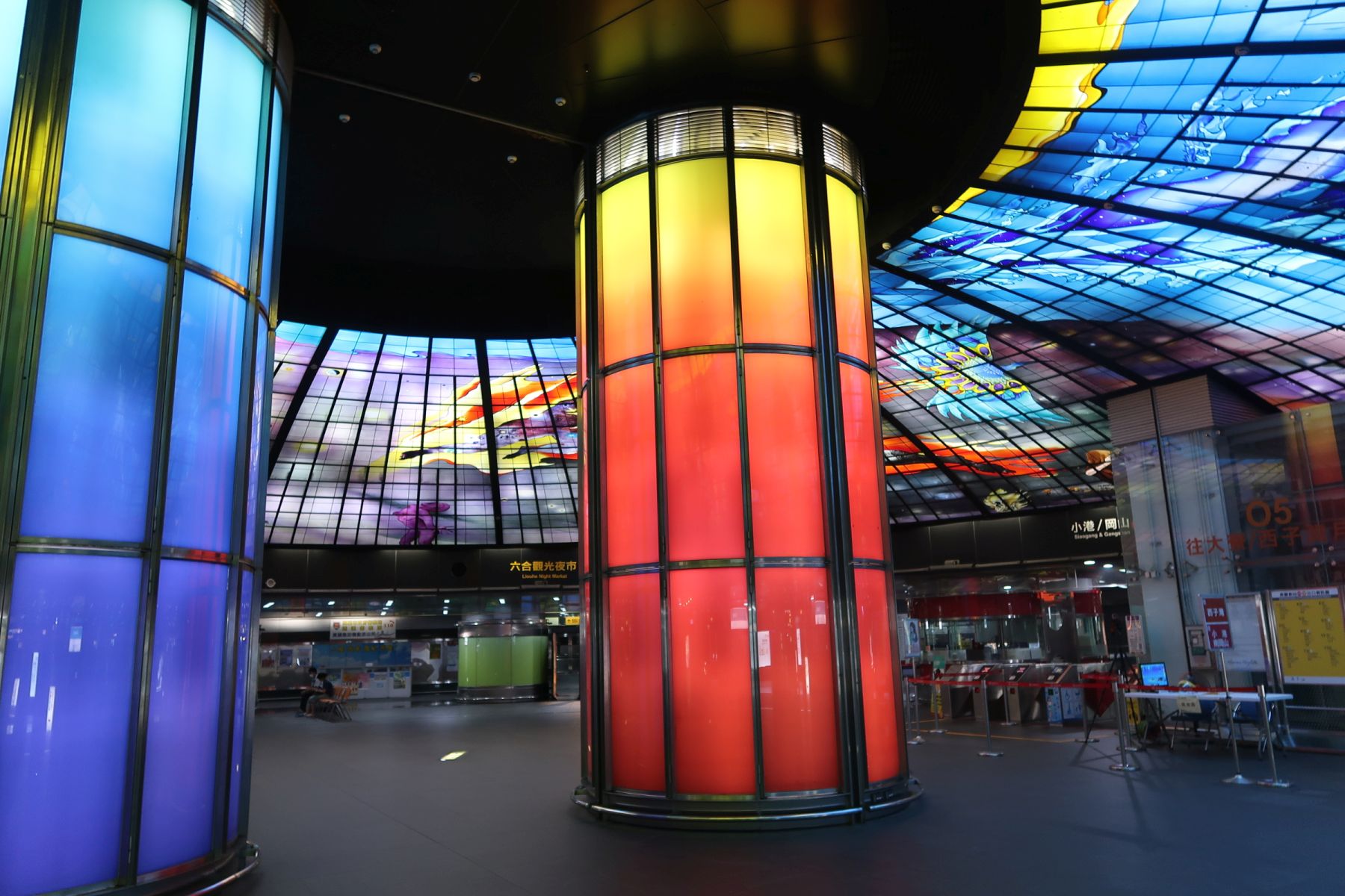 Mit der Metro gings dann direkt zum Hostel. Wir hatten uns den perfekten Ort ausgesucht − ein Dreh- und Angelpunkt von Kaoshiung. Denn gleich nebenan treffen die beiden Metrolinien „Orange“ und „Rot“ aufeinander. Diese Metrostation war übrigens auch ein beliebtes Fotosujet. Immer wieder sahen wir dort Fotografen mit ihren Stativen stehen. Warum? Darum!